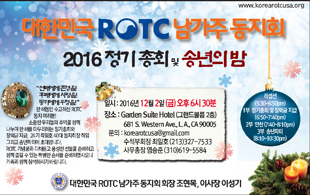 2016년도 정기총회 및 송년파티에 초대합니다!!!