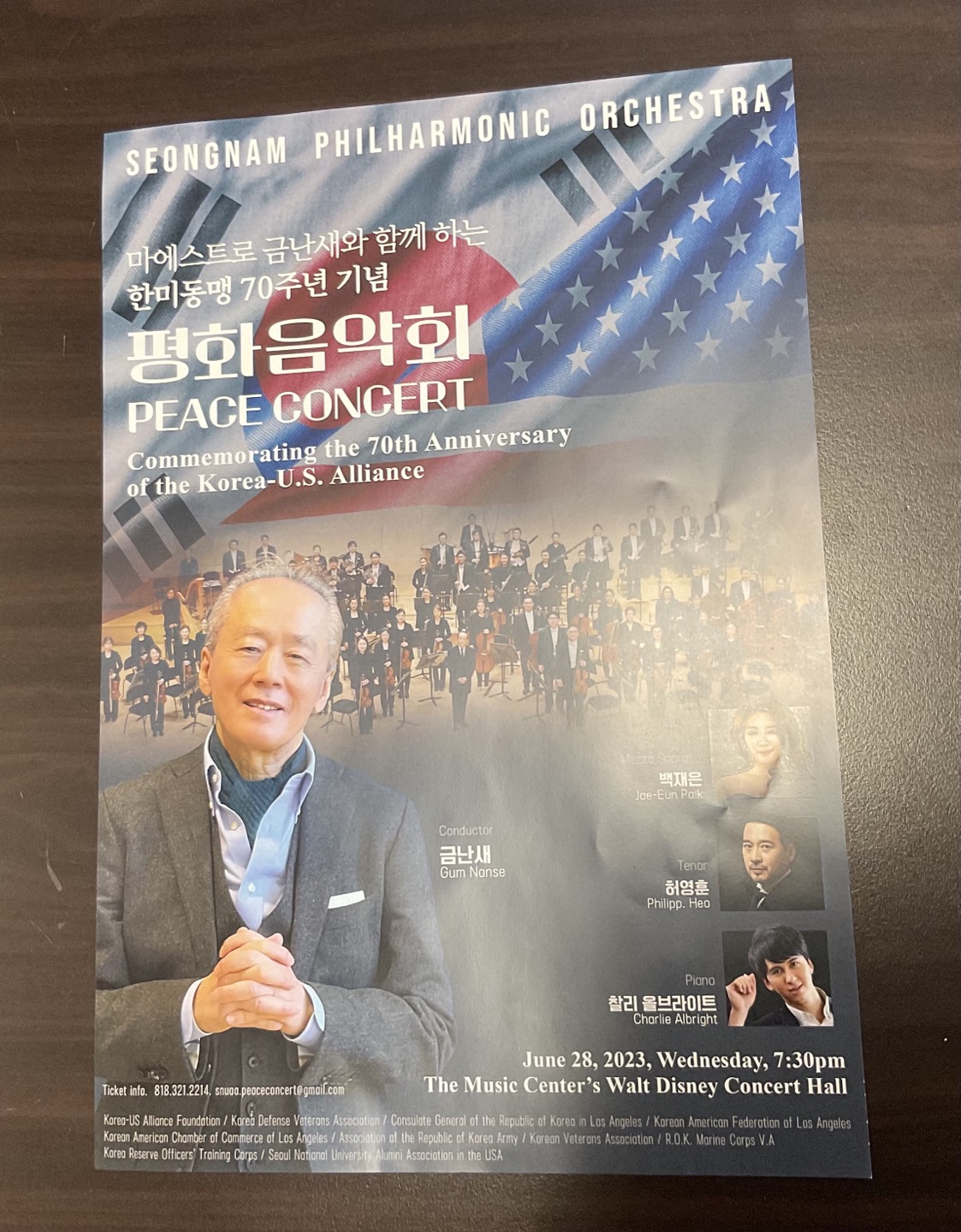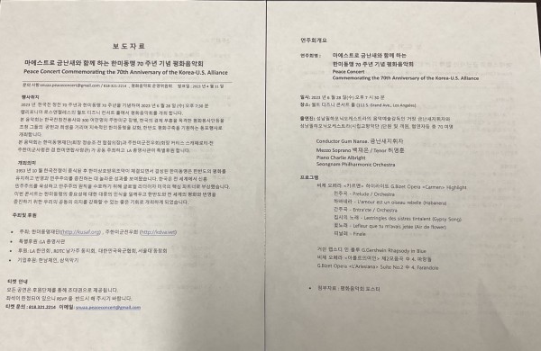 오후 7 :30분 캘리포니아 로스엔젤레스 월트 디즈니 컨서트 홀에서 평화음악회를