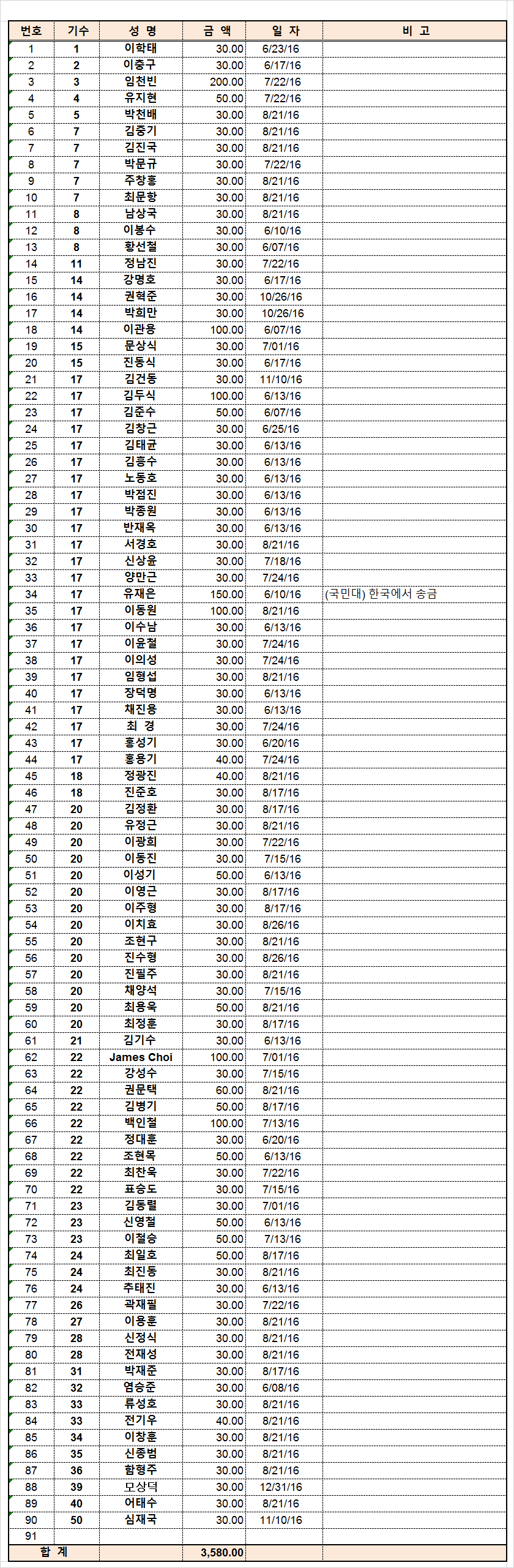 일반회비 납부에 동참 해 주신 동지회원 여러분께 진심으로 감사드립니다.