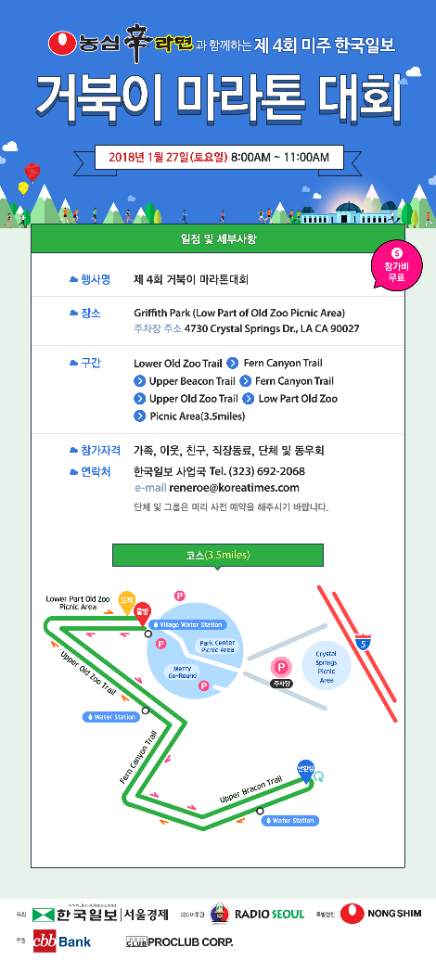 거북이 마라톤 대회가 1월 27일 오전 8시에 Griffith Park Merry Go Round Lot에서 개최됩니다.