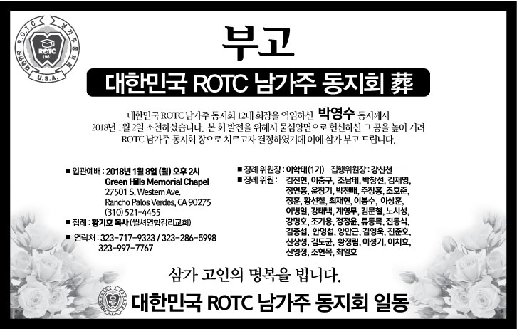 [부고] ROTC 남가주 동지회 장 (7기 박영수 12대 동지회장)